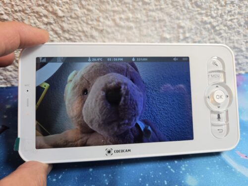 Le babyphone Cococam Baby 10Q inclut un écran de 5 pouces HD 720p avec batterie intégrée de 3000mAh. Vous pouvez surveiller bébé sans avoir besoin de votre smartphone, avec plus de 8 heures d’autonomie à luminosité minimale. La portée atteint 250 mètres en champ libre (30 mètres testés en intérieur par les utilisateurs).