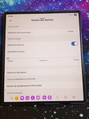 On peut paramétrer des alertes et ainsi recevoir des notifications sur son smartphone en cas de détection de bruits ou de mouvements.