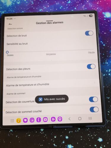 📗 Le suivi auto et la détection des pleurs marchent bien, on a aussi la température et l’humidité de la chambre affichées.
