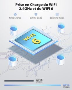 | Prise en charge du Wi‑Fi | WiFi 6 (2.4GHz uniquement) pour une meilleure stabilité. | Zone de détection | Personnalisable dans l’app pour limiter les fausses alertes. |