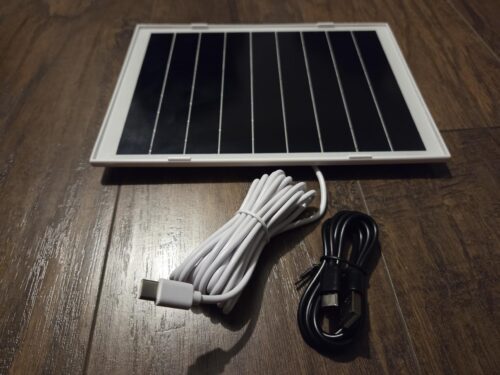So, what do we receive in this choir? A camera, luckily, as promised. It comes paired with a solar panel with USB-C connector, additional USB-A to USB-C power cable, mounting screws, mounting bracket, screw plugs, some literature providing instruction for installation and setup. I highly suggest you make use of the installation guide to mentor your setup procedure and diminish expenditure of time. The camera itself is shaped like a white, boiled egg with an unsavory blemish from its cap. This protrusion is the critical optical lens and LED light housing at the bottom of which are the SD card slot, power and reset buttons protected by a rubber insert. The neck extends rearward and connects to mounting bracket with four screw perforations which allow mounting from a ceiling/roof or on a wall. The design so far makes the camera look robotic and unpleasant, much like a science fiction film antagonist. Flanking the domed camera are the devices softer features, the dual Wi-Fi antennas, reminiscent of a soft fluffy bunny’s ears. A circular bracket is provided for the solar panel which is rectangular in shape, with a black panel array on the front face and mounting bracket holes at the rear. No further description is warranted for such a simple silhouette.