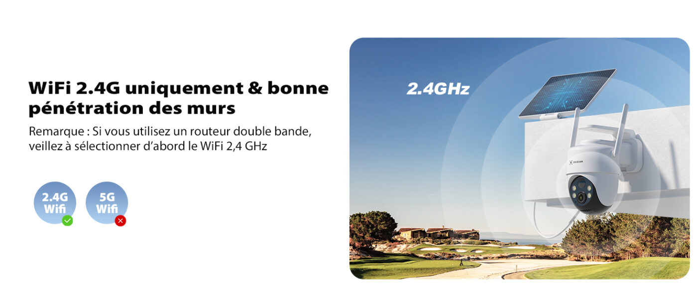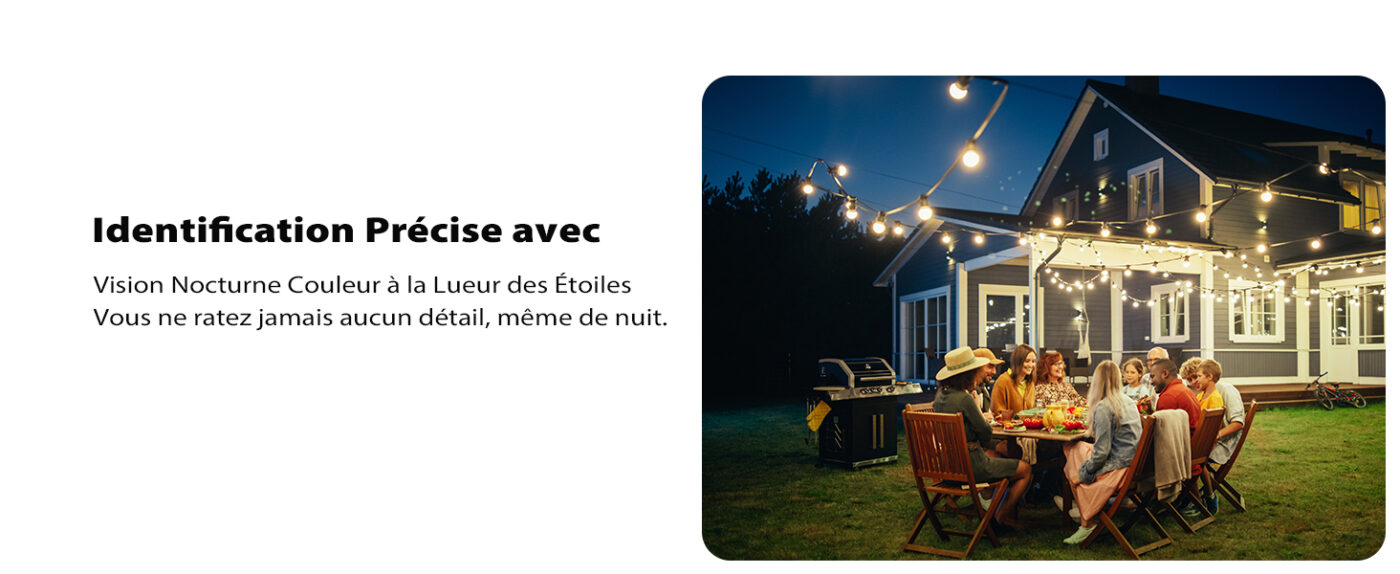 | Ne prend pas en charge | NVR, PC, Windows, MAC, navigateur, RTSP, FTP, e‑mail, HTTP, suivi automatique, Wi‑Fi 5 GHz, enregistrement 24/7 | Petit rappel | La détection des animaux domestiques et des colis nécessite un abonnement payant. |